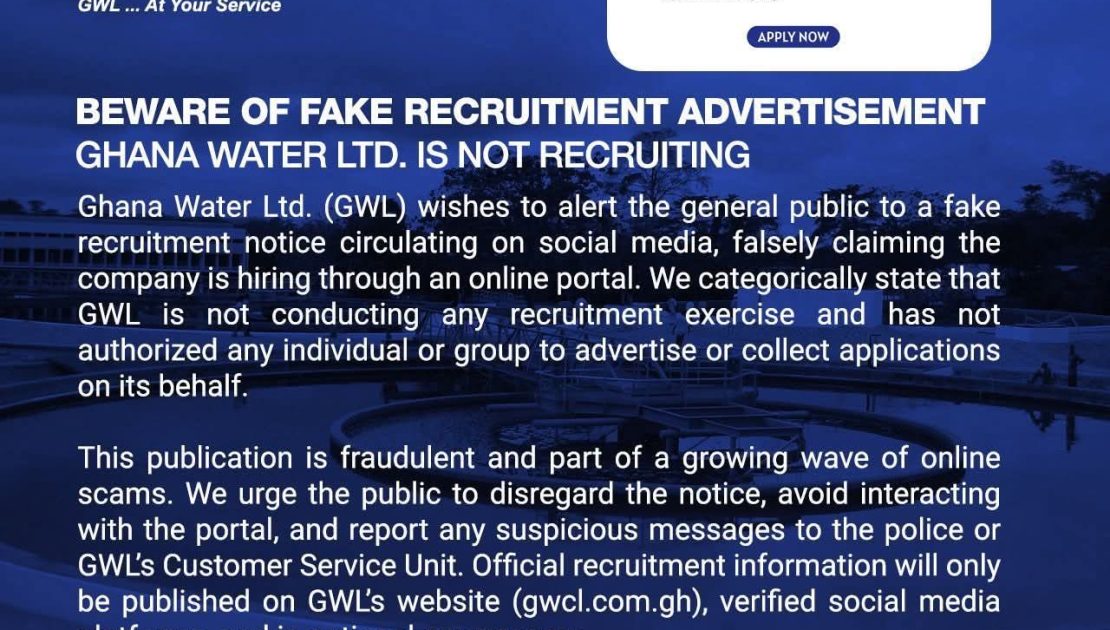 GHANA WATER LIMITED JOB APPLICATION PAGE